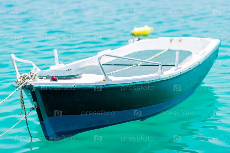 Лодки качаются на бирюзовых волнах Ионического моря Греции в солнечную погоду