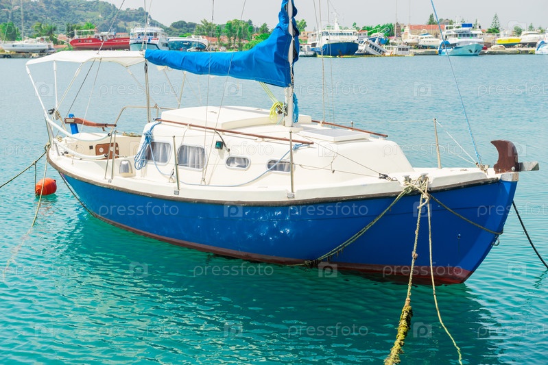 Лодки качаются на бирюзовых волнах Ионического моря Греции в солнечную погоду