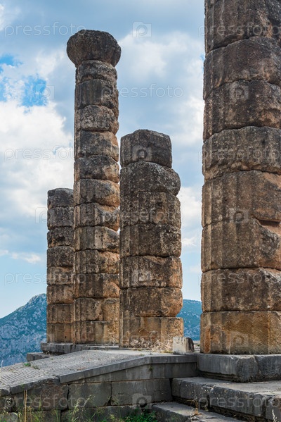Руины древнегреческого храма Аполлона в Дельфах, Греция