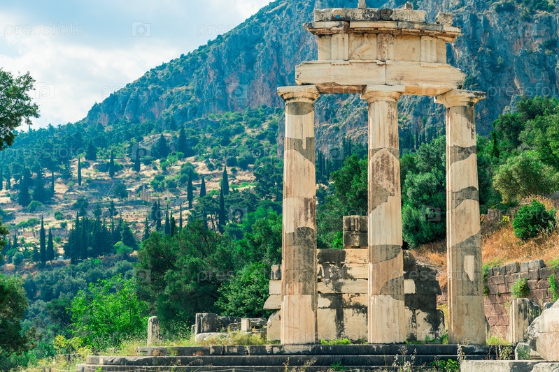 Руины древнегреческого храма Афины в Дельфах, Греция