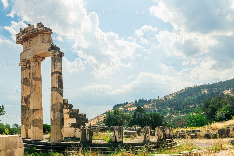Руины древнегреческого храма Афины в Дельфах, Греция
