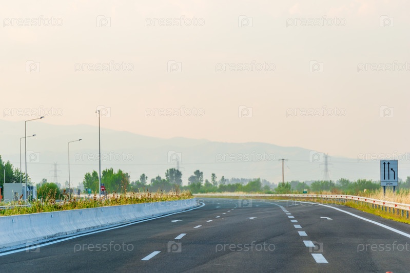 Вождение автомобиля по шоссе с видом на живописные холмы и горы, европейская дорога