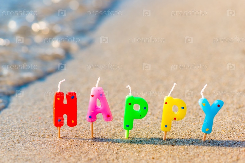 С днем рождения красочные свечи на пляже