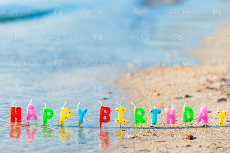 С днем рождения красочные свечи на пляже