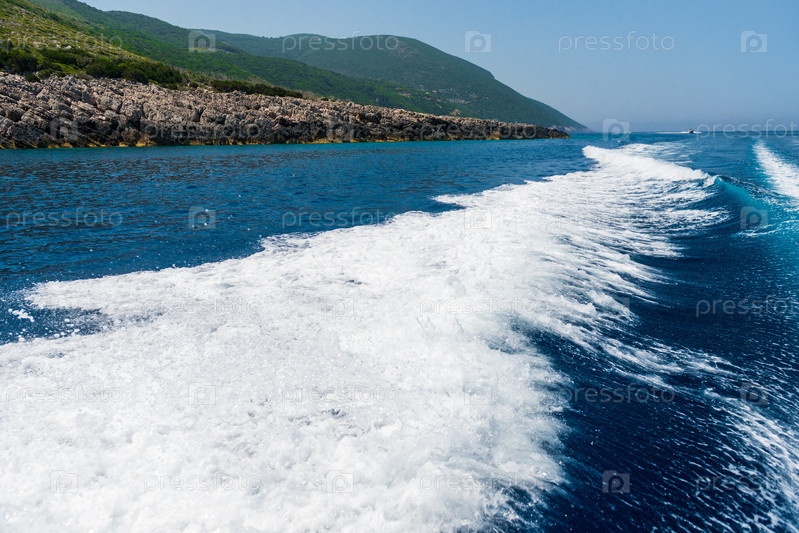 Хвост просыпается на воде от катера в солнечный день