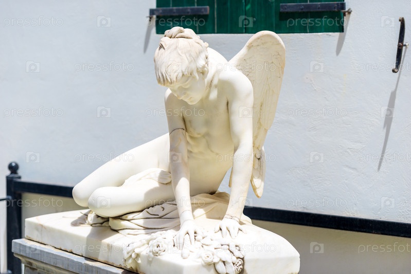 Белая скульптура купидона, статуя мальчика в винтажном стиле