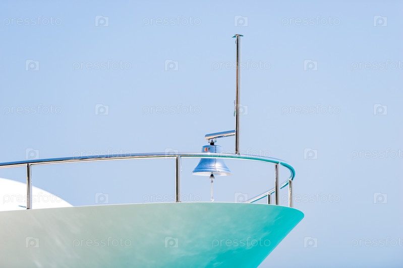 Блестящий колокольчик на носу яхты крупным планом
