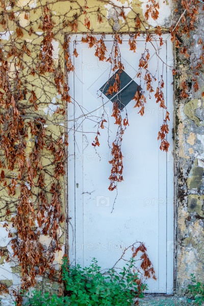 Фон - каменная стена, покрытая естественным узором из сухих зимних стеблей диких лиан