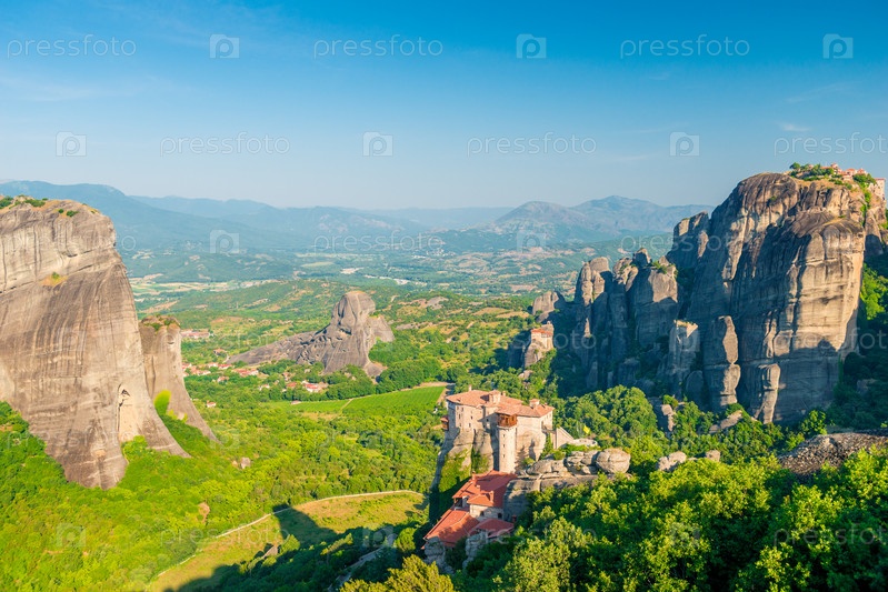 Красивый комплекс монастырей Метеоры, построенный на скалах, Фессалия, Греция