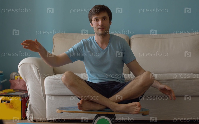 Человек, сидящий на палубе для равновесия