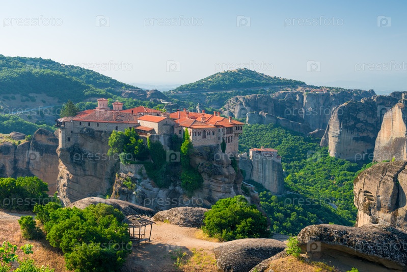 Красивый комплекс монастырей Метеоры, построенный на скалах, Фессалия, Греция