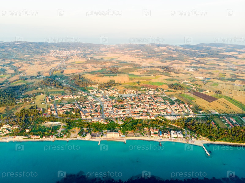 Вид с воздуха на море и пляж Халкидики, Греция