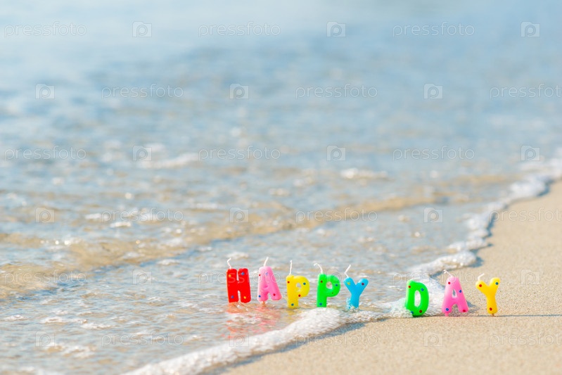 С днем рождения красочные свечи на пляже
