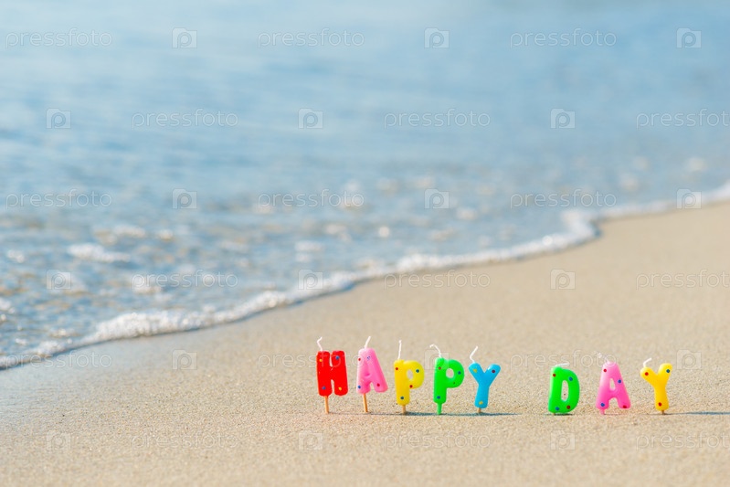 С днем рождения красочные свечи на пляже