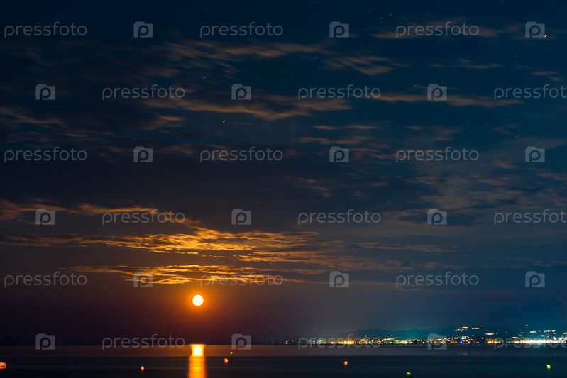Вечернее небо с драматическими облаками над морем. Драматический закат над морем