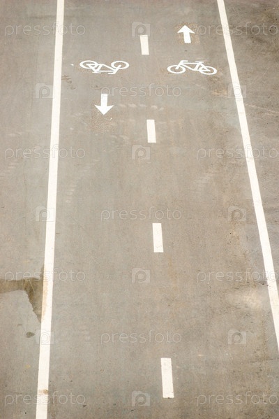 Велосипедный знак на сером асфальтовом тротуаре