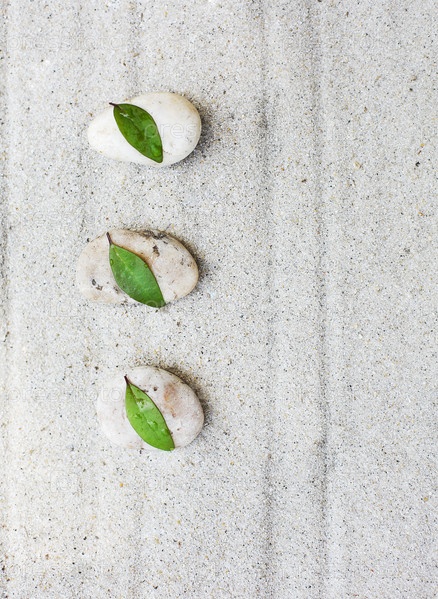 Дзен-сад с серыми камнями и зелеными листьями