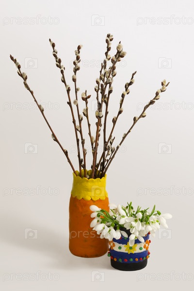Натюрморт с букетами вербы и подснежников
