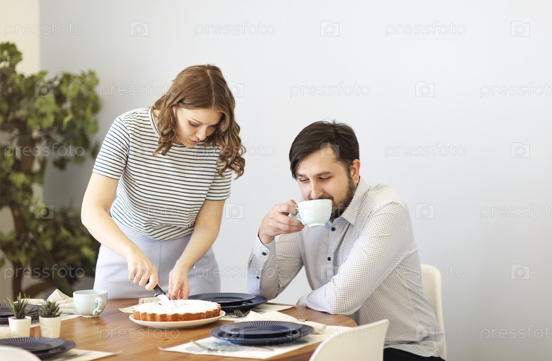 Пара завтракает вместе утром