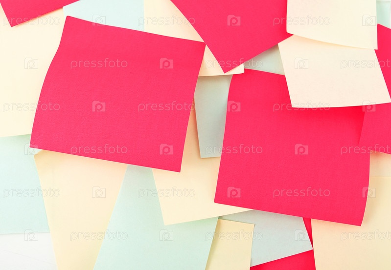 Сверху куча разноцветных липких листов чистой бумаги для сообщения или напоминания