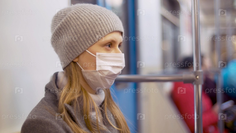 Портрет молодой женщины в защитной маске в вагоне метро
