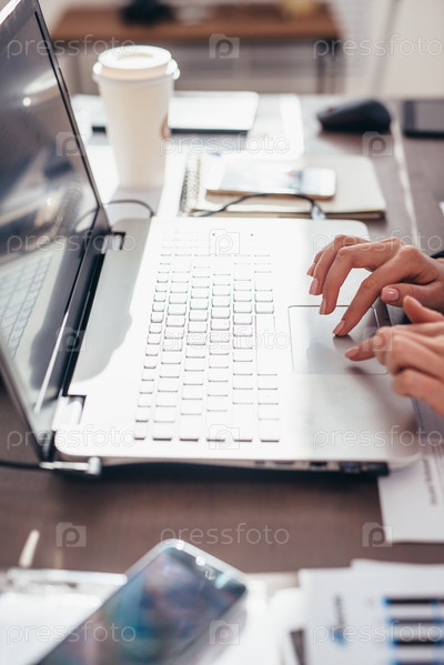 Женские руки печатают на клавиатуре ноутбука