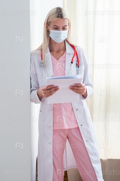 Женщина-врач рассматривает результаты анализов. Кавказская женщина работает в клинике