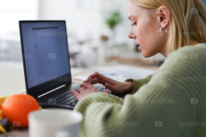 Женщина с ноутбуком работает дома