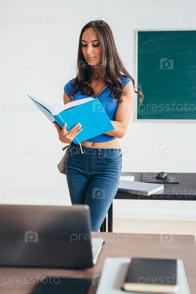Портрет студентки, держащей книгу и читающей