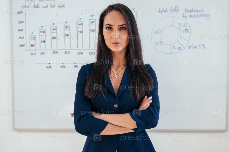 Портрет деловой женщины перед доской
