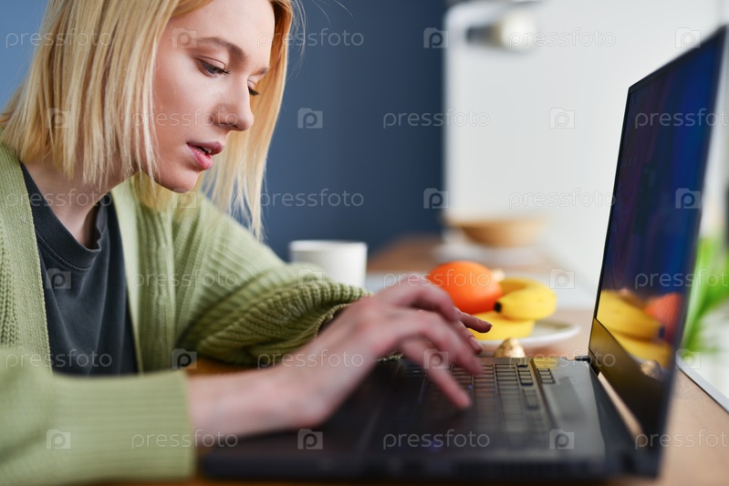 Женщина дома с ноутбуком
