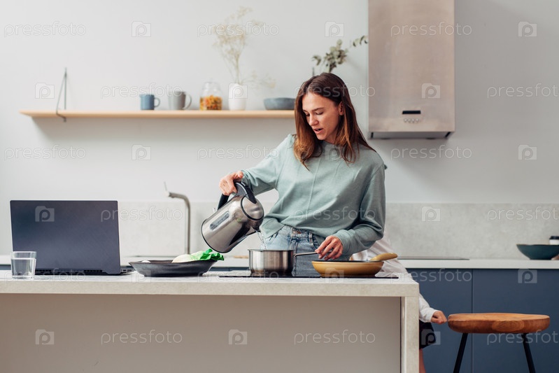 Молодая женщина готовит на кухне дома