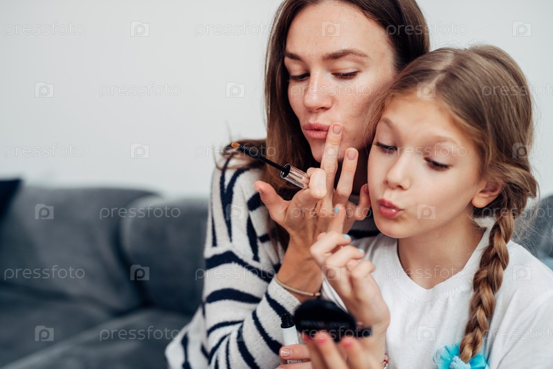 Мать и дочь делают себе макияж