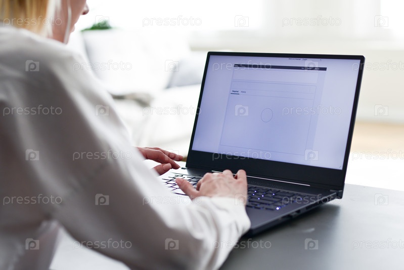 Экран ноутбука. Женщина использует свой ноутбук, сидя за столом