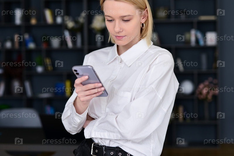Деловая женщина с помощью телефона в офисе