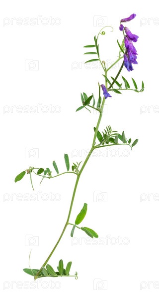 Ветвь мышиного гороха (Vicia cracca) с цветами на белом фоне