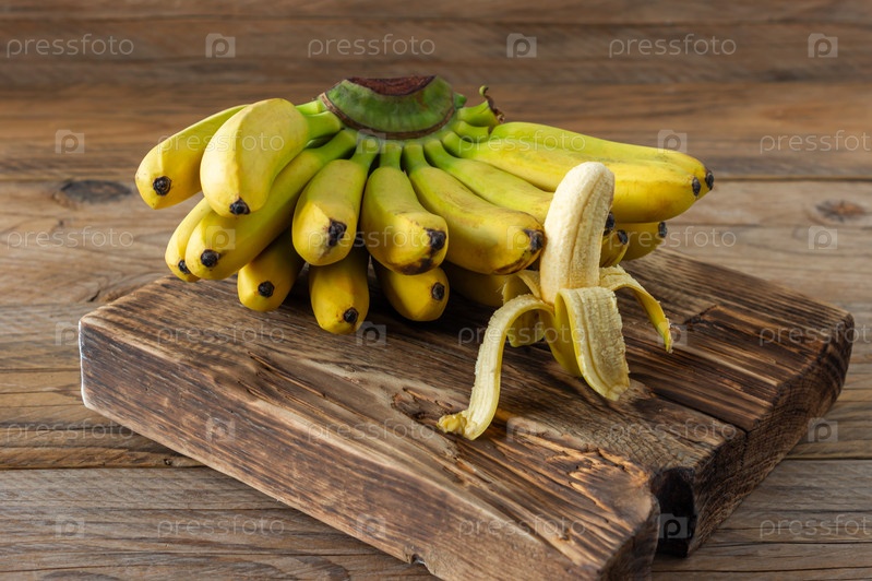 Спелые бананы на деревянном фоне. Вкусные полезные тропические фрукты