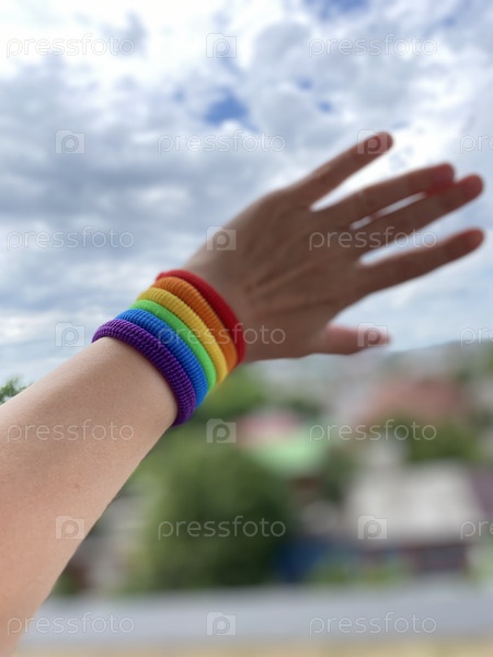 Браслет на руке в виде радуги