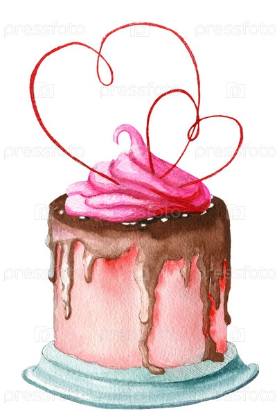 Акварель - еда - торт - крем - сердечки
