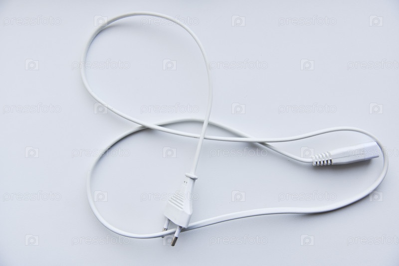 Белый шнур питания на белом фоне. Электрический шнур на белом фоне