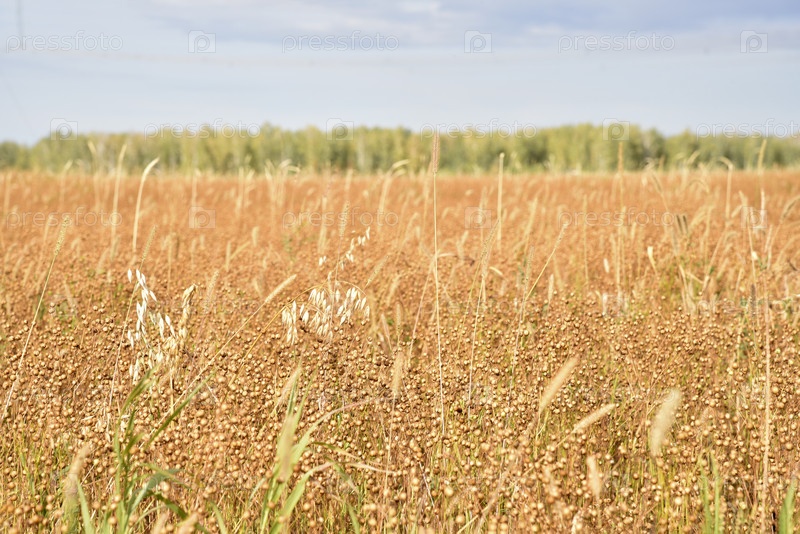 Поле гречихи в сельской местности в течение дня. Колосья гречихи осенью во время уборки