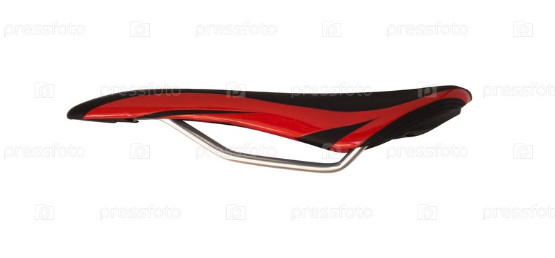 Вид сбоку на красное и черное седло велосипеда на белом фоне