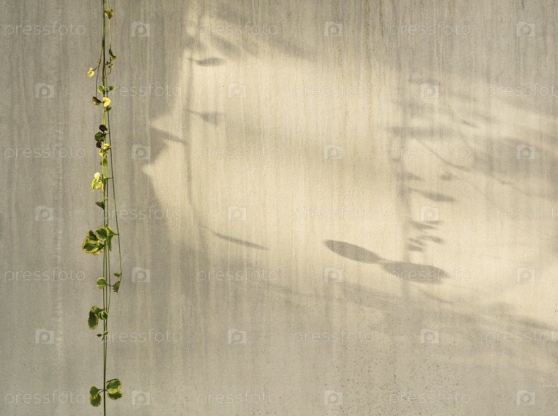 Висящее растение на фоне серой стены с копией пространства