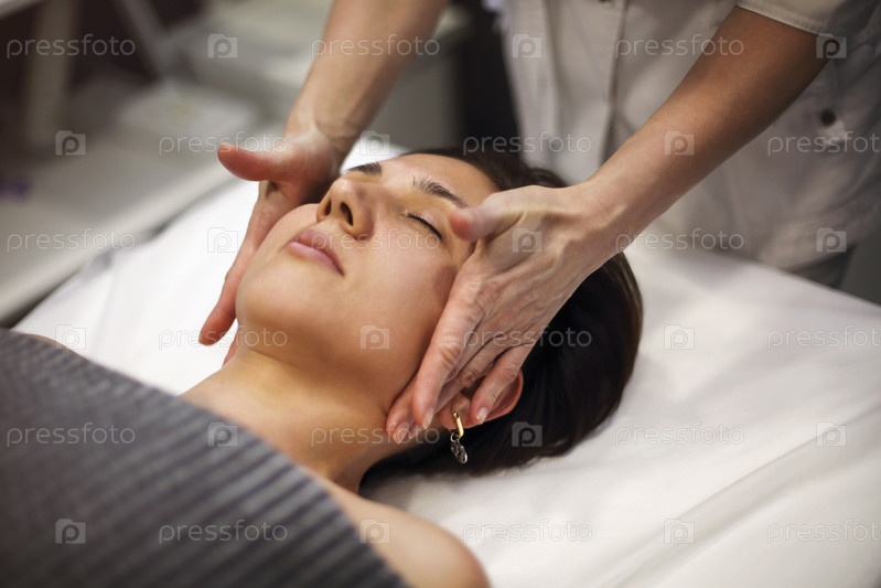 Терапевт-массажист массирует лицо клиента
