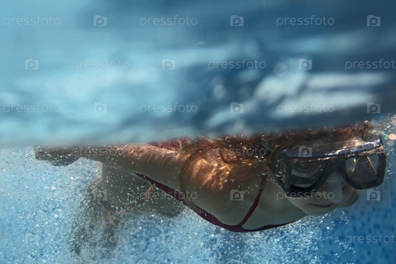 Блондинка подводное плавание в голубом бассейне