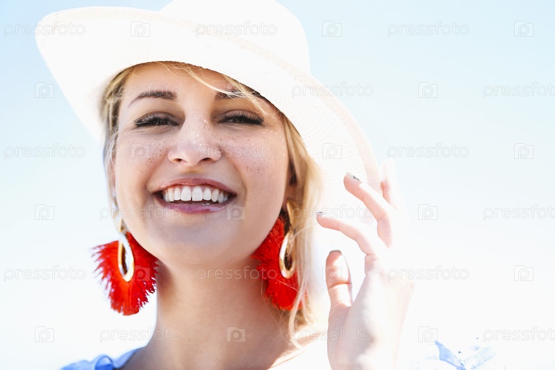 Счастливая стильная женщина стоит