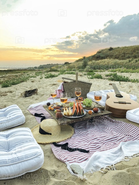 Вкусная еда на столе на пляже