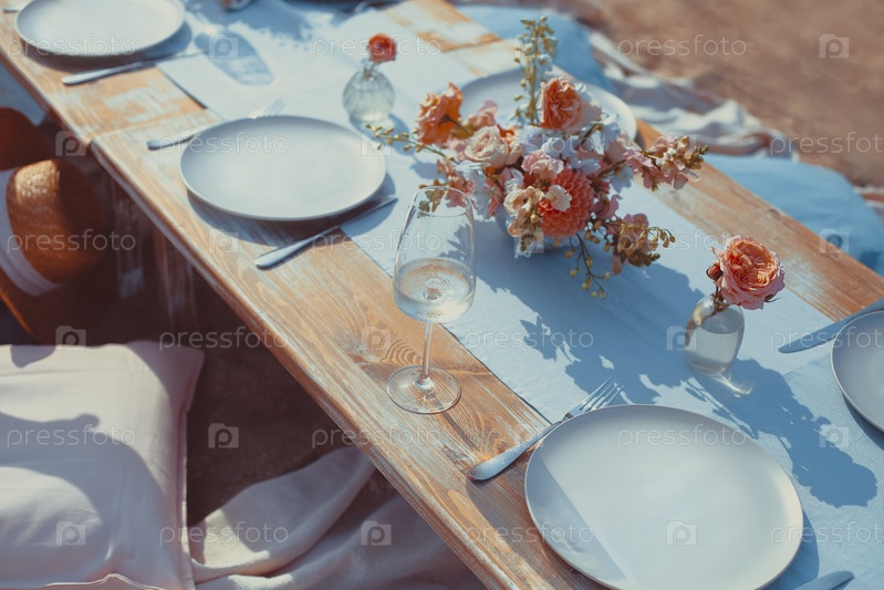 Вкусная еда и цветы для летнего пикника на свежем воздухе