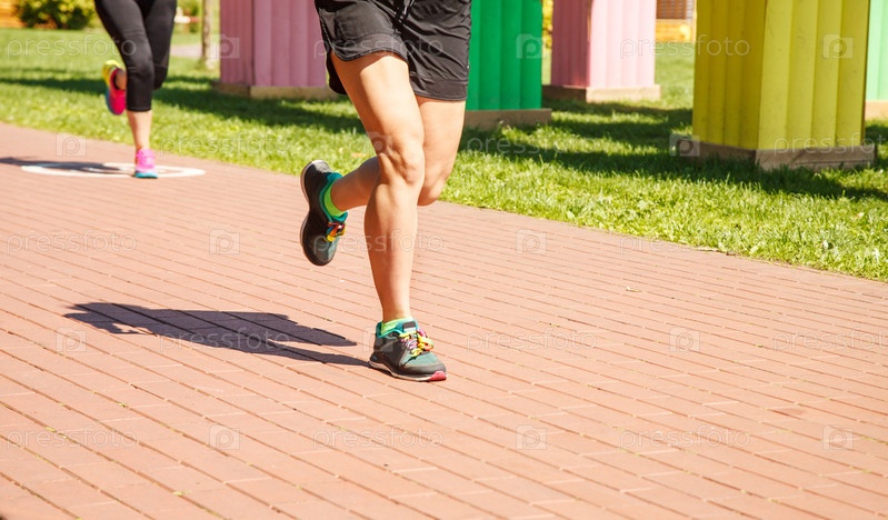 Ноги двух девушек, бегущих на спортивных соревнованиях