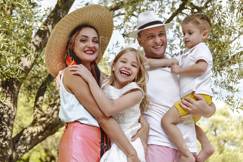 Счастливая молодая семья на летних каникулах